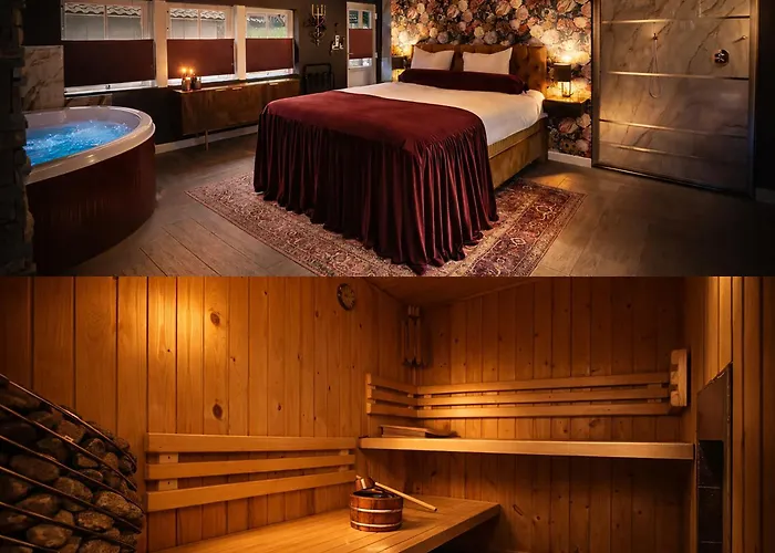 Wellness Tuin - Boudoir Suite - Ultieme Partner Beleving - Indoor Jacuzzi En Openhaard En Prive Sauna - In Romantische Stijl - Gratis Fles Prosecco & Leuke Partner Connect Box !